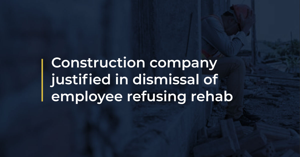 “[His] refusal to undergo a substance abuse assessment as part of the SAP prevented Lafarge from meeting its human rights law obligations,” reads the court decision. “The wilful refusal to abide by a policy critical to ensuring a safe workplace is incompatible with continued employment,” the court said, concluding that his behaviour constituted a repudiation of his employment contract.